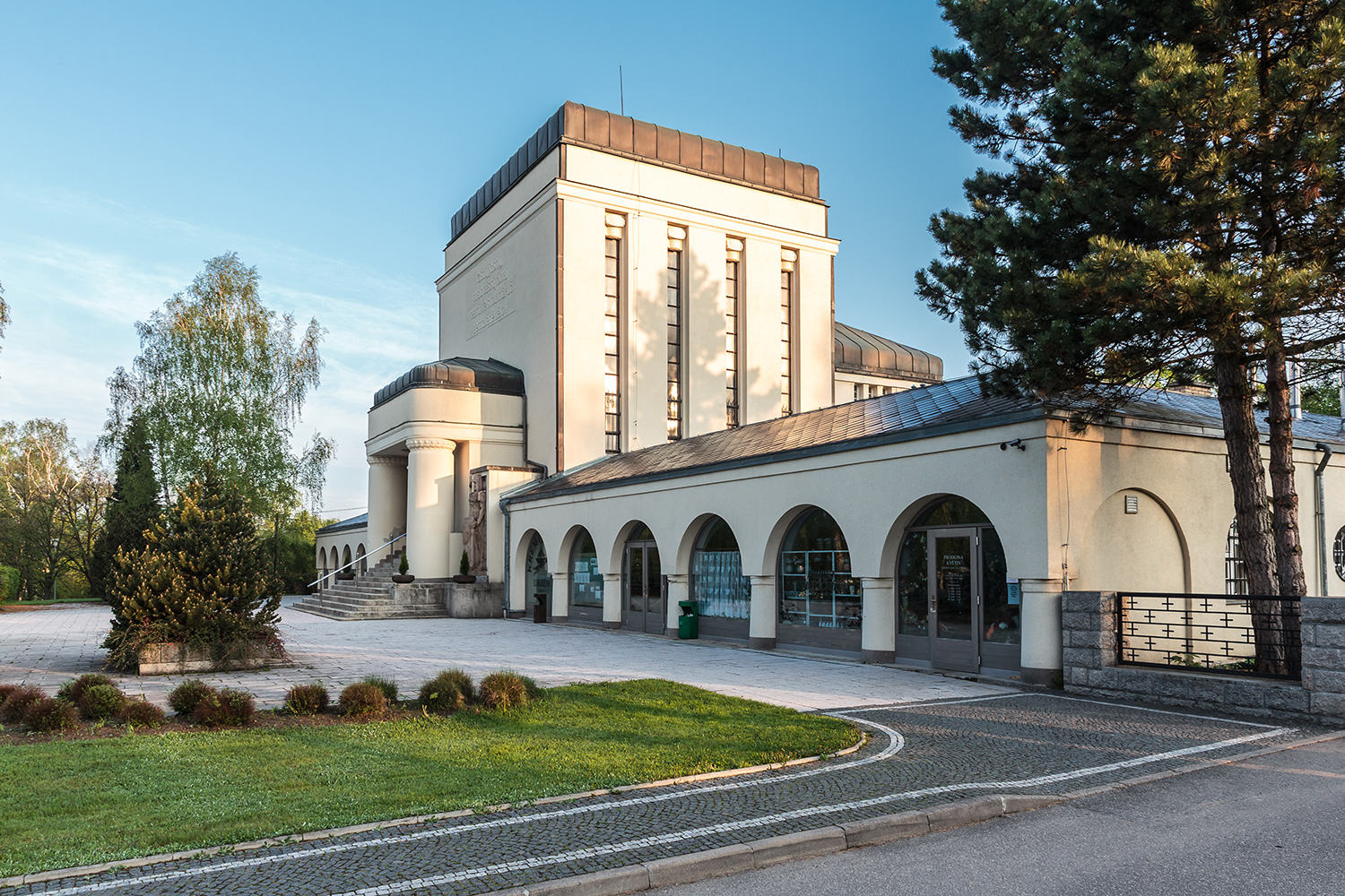 Das monumentale Jugendstilgebäude des Architekten Rudolf Bitzan aus den Jahren 1915–1917 ist das älteste Krematorium auf dem Gebiet der ehemaligen österreichisch-ungarischen Monarchie. Das Gebäude ist mit mythischen Statuen von Alois Rieber und einem Zitat des Dichters Anton August Raaff geschmückt, das die reinigende Kraft des Feuers feiert.